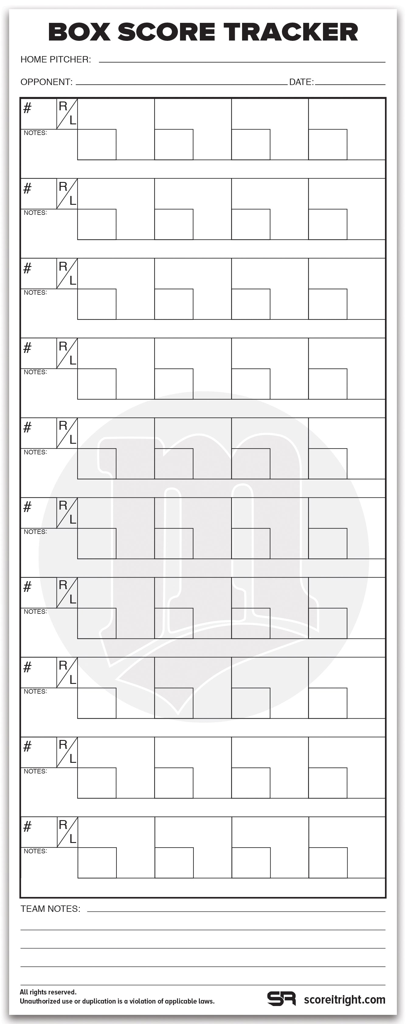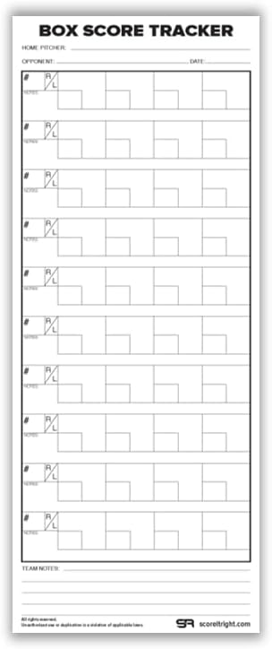 Maximize your coaching efficiency with our innovative box score tracker, a must-have tool for any team coach. Tailored for tracking individual hitting stats, this tracker is essential for strategic game analysis. It includes a dedicated section for notes, allowing coaches to plan and reflect for future practices. Customize it with your team's logo, colors, and name for a personalized and professional look. Ideal for teams seeking to enhance performance and strategic planning.