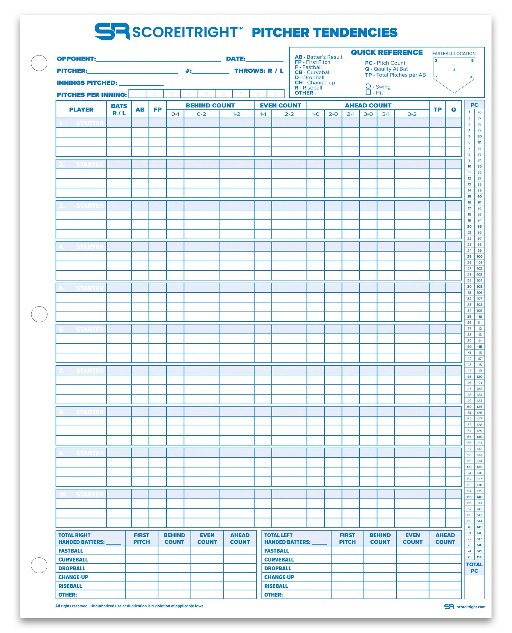 Enhance your team's strategy with our versatile range of five different scouting charts, ideal for pitching and hitting analysis. Designed for convenience, all charts are three-hole punched for easy storage in any standard binder. Each pack includes 35 sheets, along with a sample sheet to guide usage. Perfect for multiple applications in game planning and performance tracking